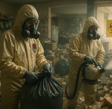 Pour les situations sensibles (logement de ramasseur compulsif, contamination avancée, odeurs tenaces), notre équipe formée en assainissement délicat procède par tri, déblaiement sécurisé, désinfection ciblée et neutralisation d’odeurs, avec accompagnement humain du début à la fin.